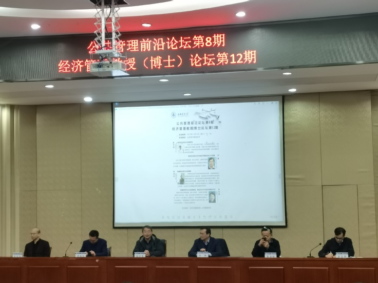 本网讯 11月11日,经管学院、公管学院在北区图书馆二楼报告厅联合举办经管学院第12期教授(博士)论坛暨公管学院第8期公共管理前沿论坛。本次论坛邀请《经济理论与经济管理》副主编、中国人民大学经济学院和公共管理学院杨万东教授,《北京工商大学学报(社科版)》编辑部主任、北京工商大学经济学院王轶教授,《中南财经政法大学学报》编辑部主任、中南财经政法大学经济学院胡浩志教授,《安徽大学学报(哲社版)》主编、安徽大学经济学院张治栋教授担任主讲嘉宾。经管学院院长彭志胜、公管学院院长黄佳豪以及学院骨干教师、研究生100余人参加。论坛由公共管理学院院长黄佳豪主持。