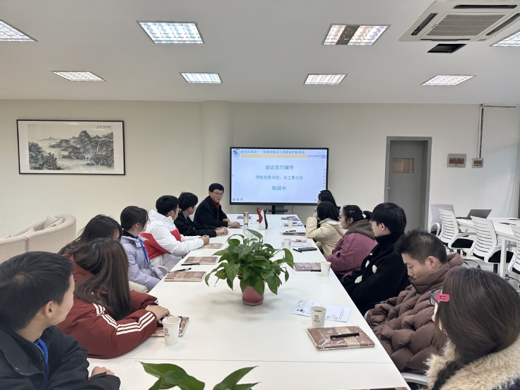 陈国中为参加座谈的毕业生代表作面试技巧辅导。他从面试形式、面试准备、着装礼仪、言行举止、应答技巧等方面,详细介绍了面试前及面试中应该注意的问题,帮助毕业生们掌握面试技巧,提升就业竞争力。同时,针对当前严峻的就业形势,他鼓励同学们早谋划、早准备、早行动,准确把握就业形势,明确自身定位,把握就业黄金期,争取早日签订一份满意的工作。