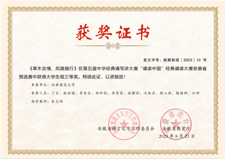 充分发挥新媒体作用,学院新媒体中心原创作品《青春不皖惜》获安徽省禁毒短视频大赛一等奖,党的二十大精神学生宣讲团的歌舞作品《草木含情风雅随行》获校一等奖、最佳表演奖及第五届中华经典诵写讲大赛安徽省三等奖;以学院特色品牌“女生节”“四季悦读”为载体,举办“魅力女生,经彩纷呈”女生节系列活动、“春风有信,花开有期”DIY香包活动、“无畏荆棘,自在逐光”分享交流会、“经音杯”歌唱比赛、“梦系青春,情忆经管”毕业晚会、“寻宿一隅,有幸遇你”寝室文化节等活动,鼓励学生培养艺术爱好,提升学生认识美、理解美、欣赏美、创作美的能力;成立“指短琴长”钢琴演奏社,有固定社员近20名,课间定时演奏,进一步培养学院学子高尚情操与人文素养。