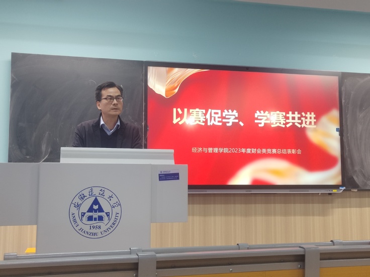 相关赛事负责人简要汇报了2023年度学院学子在财会类竞赛中获奖情况,并针对2024年竞赛工作进行了动员,希望全院各年级同学积极、踊跃参加各级各类学科竞赛。