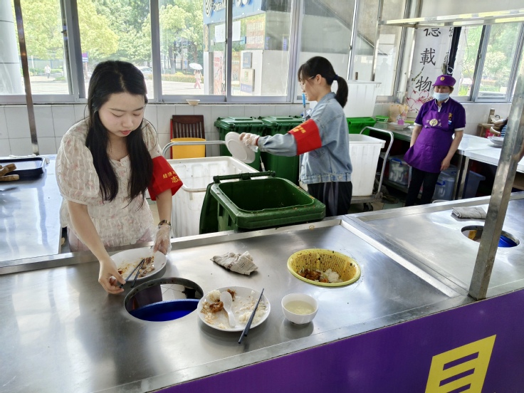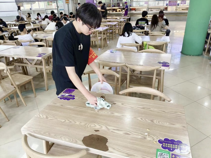 组织学生先后在食堂里、操场上、教室开展劳动志愿服务活动。志愿者们对教室、操场进行了专项清洁。在食堂开展光盘宣传,帮助食堂阿姨收拾碗筷,打扫桌子上的残留物。在校园内进行垃圾分类投放活动,工作人员通过发放垃圾分类宣传彩页和趣味垃圾分类套圈小游戏的形式向同学们普及垃圾分类的相关知识。同学们热情高涨地投入到校园劳动实践活动中。通过辛勤劳动,使得教室等公共区域焕然一新,也让同学们增强了劳动实践和垃圾分类的技能,把劳动的种子深植在心中,践劳动之行,悟劳动之美。