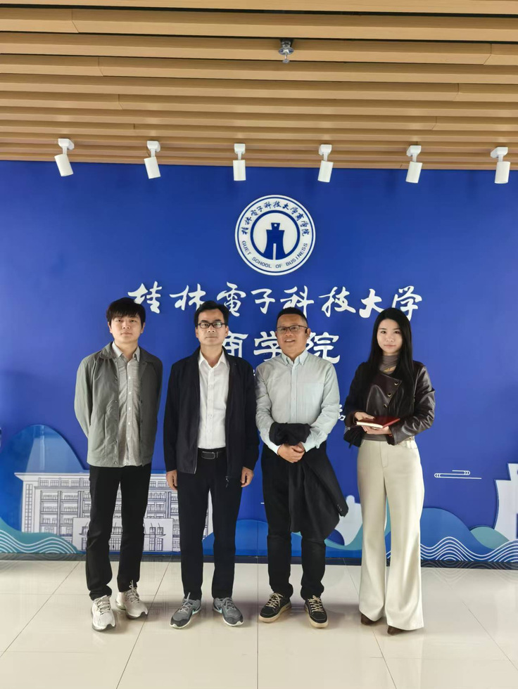 本网讯 为深入推进会计学科专业建设,11月5日,经管学院院长彭志胜和学术院长屈绍建率青年教师张婉莹、昂昊赴桂林电子科技大学商学院开展调研交流活动。桂林电子科技大学商学院院长张发明热情接待了调研组一行,商学院副院长于飞、院长助理苏鑫、财务管理系主任赵越、党政办公室主任曾朝蓉参加交流活动。