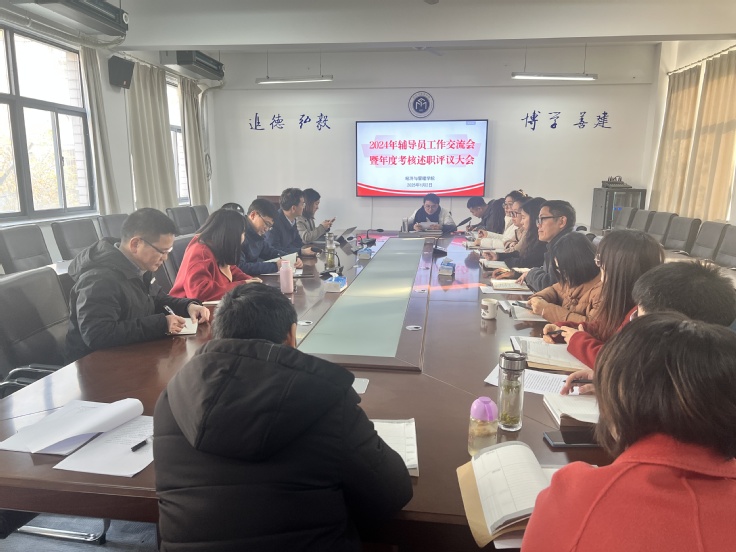 本网讯 为切实加强学院辅导员队伍建设,促进经验交流与团队协作,进一步提升学生工作质量,1月2日,经管学院在建树楼404会议室召开2024年辅导员工作交流暨年度考核述职评议大会。学院领导班子成员以及全体专兼职辅导员参加会议,会议由学院党委副书记帅英主持。