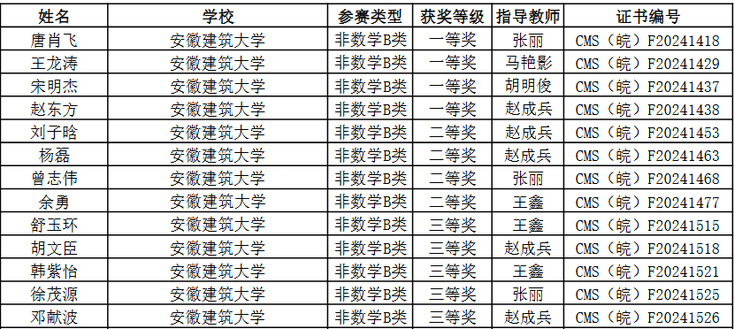 本网讯 近日,第十六届全国大学生数学竞赛初赛安徽赛区成绩揭晓。我校经管学子在此次竞赛中表现突出,取得了非数学B类的一等奖4项、二等奖4项和三等奖5项。