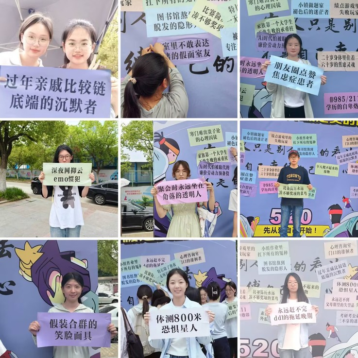 当前,大学生面临学业、就业、人际关系等多方面的压力,负面情绪容易积压,影响心理健康。基于这一现状,经管学院策划了此次活动。活动现场亮点纷呈,最引人注目的当属主题心理背景板。上面贴满了“朋友圈点赞焦虑症患者””“游戏黑洞”等常见的负面标签,这些标签反映了大学生在生活中遭遇的负面评价,既诙谐幽默又发人深省。参与者纷纷上前撕下束缚自我的标签,并在背景板前合影留念。这一简单的举动象征着他们摆脱外界和自我施加的束缚,勇敢释放内心压力。现场一名参与学生表示:“撕下标签的瞬间,仿佛卸下了无形的压力,提醒自己不必活在别人的评价里。”