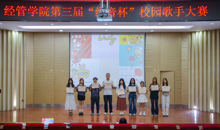 本网讯 为营造青春活力的校园艺术氛围,搭建学生展示才华的舞台,提升学生审美修养。6月5日,经管学院第三届“经音杯”校园歌手大赛决赛在金寨路校区图书馆报告厅精彩举行。本次比赛吸引了众多同学热情参与,八组参赛选手以歌声描绘青春,用音乐传递情感,为现场观众带来了一场视听盛宴。
