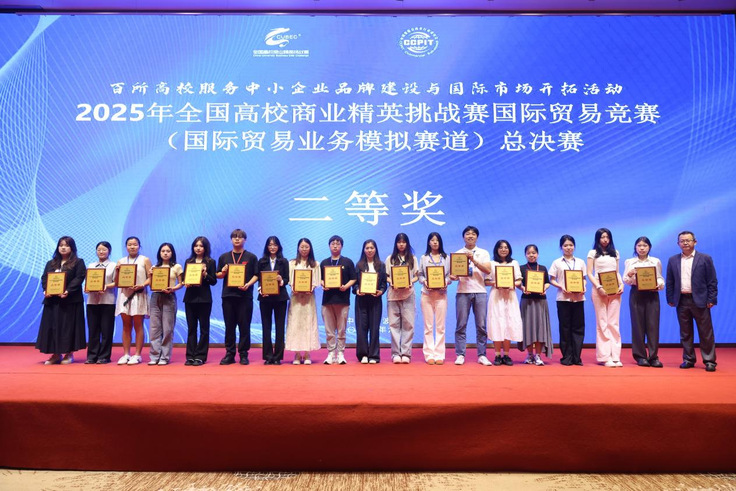 本网讯 第十五届全国高校商业精英挑战赛国际贸易竞赛(国际贸易业务模拟赛道)总决赛于2025年6月5日至6月9日在浙江省宁波市顺利举行。我校经管学院刘伟、吴晓蕊、梅子烨等学生组建的代表队在黄琼、李娜娜两位教师指导下,与武汉大学、东北大学、对外经济贸易大学等高校同场竞技,最终从来自全国的408支团队脱颖而出,斩获全国二等奖。