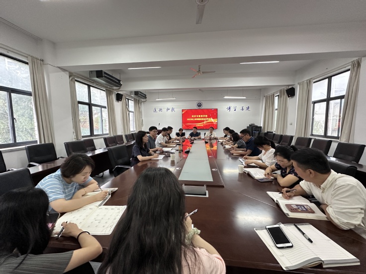 本网讯 6月20日下午,经济与管理学院在建树楼404会议室召开2025年上半年期末安全工作会议。学院领导班子成员、教学办、科研办、实验中心负责人及全体辅导员参加会议,会议由学院党委书记陈国中主持。