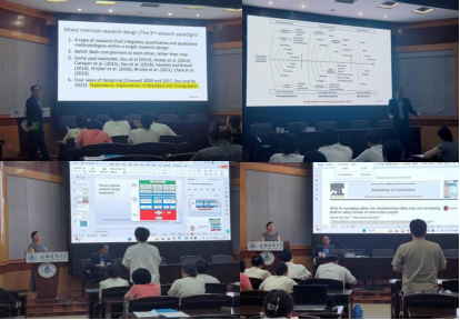 随后,邹教授以安全管理研究为例,阐释混合方法如何落地。通过定量数据呈现项目客观情况,结合定性访谈挖掘实践经验,双向印证提升研究可信度,展现该方法在复杂工程场景中的应用价值。同时,他强调研究伦理的重要性,从参与者自愿、信息保密到确保数据真实完整,为学术探索筑牢道德底线。