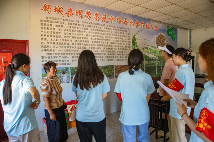 本网讯 为深入贯彻落实习近平总书记关于“三农”工作的重要论述,积极响应乡村振兴战略部署,扎实推进青年学子助力乡村振兴行动,7月4日至5日,经管学院“青春知行,菁琯助农”综合服务实践团14名师生走进舒城县汤池村、油坊村、三江村,通过爱心捐赠、专题座谈、调研走访、直播带货、思政宣讲等一系列活动,深度参与乡村振兴建设,为乡村发展注入青春动能与数智活力。
