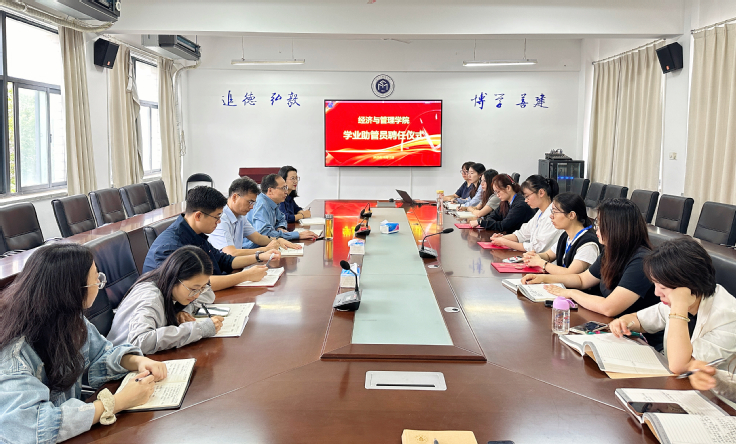 本网讯 为深入学习贯彻习近平总书记关于教育的重要论述,落实立德树人根本任务,进一步加强和改进学风建设,充分发挥榜样学生的示范引领作用,10月11日,经管学院在建树楼404会议室举办第一届学业助管员聘任仪式。学院领导班子成员、全体辅导员、教学办教师及三名已经成功保研的“准研究生”参加仪式。仪式由学院党委副书记汪令宇主持。
