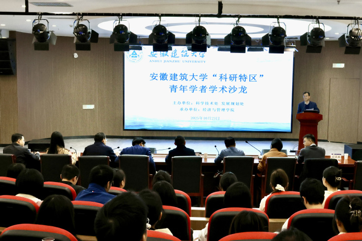本网讯 10月23日下午,由科技处和发规处主办、经济与管理学院承办的“科研特区经管+”青年学者学术沙龙在徽智楼一楼报告厅成功举行。本次活动以“交叉赋能·精准预见:数字化浪潮下的绿色低碳与经济转型新范式”为主题,聚焦全球经济变革、数字化转型与可持续发展等关键领域,通过跨学科深度交流,打破学科界限,推动理论与实践的融合。学校党委常委、副校长高跃峰出席活动并致辞,科技处和发规处领导、经济与管理学院领导班子成员、相关学院科研工作者、学校在站博士后及在校博士生、硕士生共90余人参加活动,活动由经济与管理学院院长彭志胜教授主持。