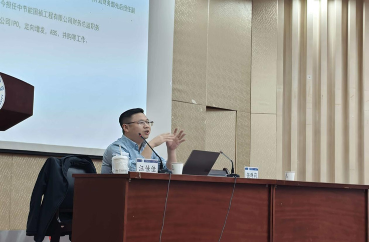 本网讯 为更好地推进学院产学研深度融合,丰富《管理决策仿真模拟》课程教学形式和内容,开拓学生视野,2025年10月26日上午,经管学院于金寨路校区图书馆二楼报告厅举办企业专家进课堂活动,活动主题为 “从‘账房’到‘导航’:财务管理如何引领公司行稳致远”。本次讲座特邀学院优秀校友、现任中节能国祯工程有限公司财务总监的汪佳佳先生重返母校,分享丰富的工作实战经验和行业前沿洞见。2024级财务管理与会计学专业本科生及全体在校会计专硕研究生参加讲座,活动由财会系强群莉教授主持。