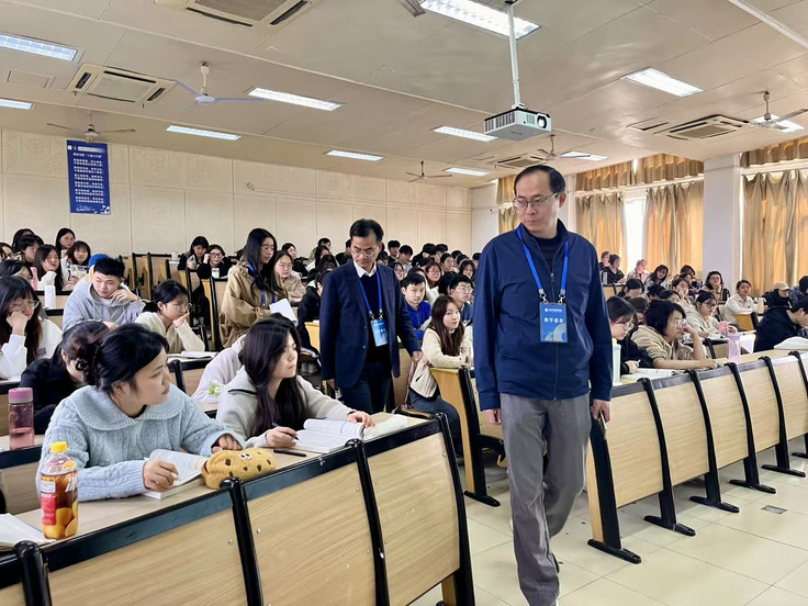 会议结束后,为积极响应学校关于学院书记、院长同进课堂的活动要求,学院领导班子成员与学业助管员共同走进课堂开展巡课活动,实地检查教学运行情况。通过领导深入教学一线,及时掌握学生学习状态与教师授课情况,实现了学生管理与教学管理的深度融合。学院党委书记潘和平强调了期中教学检查工作对于保障教学质量、夯实学风基础的重要性,他提出学院要持续优化学风培育长效机制,重视课堂教学管理,共同构建“教师乐教、学生勤学”的优良生态,推动人才培养质量再上新台阶。