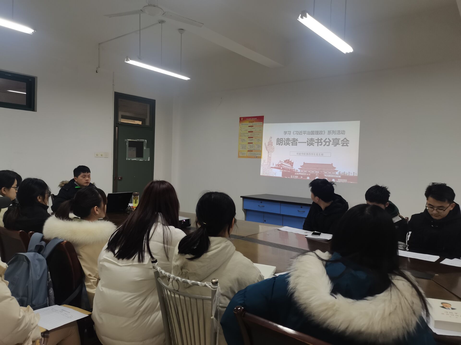本网讯 为学习贯彻习近平新时代中国特色社会主义思想,引导青年党员将党的理论学懂悟透,真正入脑入心,近日,环能学院第四学生党支部开展了以学习《习近平谈治国理政》第三卷为主要内容的“朗读者读书分享会”主题党日活动。