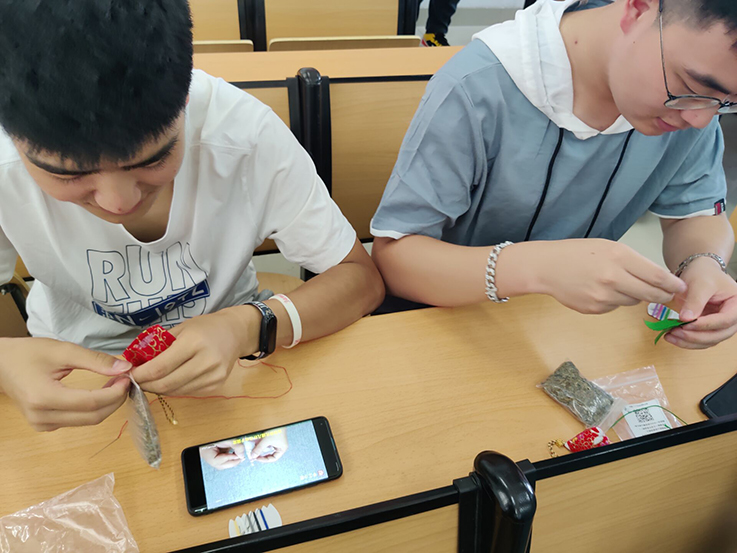 活动现场,负责人将香囊制作所用的材彩纸、艾草、彩绳等材料分发到同学们手中,并详细讲解制作香囊的方法和端午节佩戴香囊的由来。同学们认真听讲,动手制作,整个活动现场井然有序、气氛活跃。经过在场同学的精心制作,一个个寄托着对生活的美好祝愿的香囊“新鲜出炉”。同学们纷纷表示,香囊的制作让人感受到了传统节日文化的独特魅力,也锻炼了自己的动手能力。