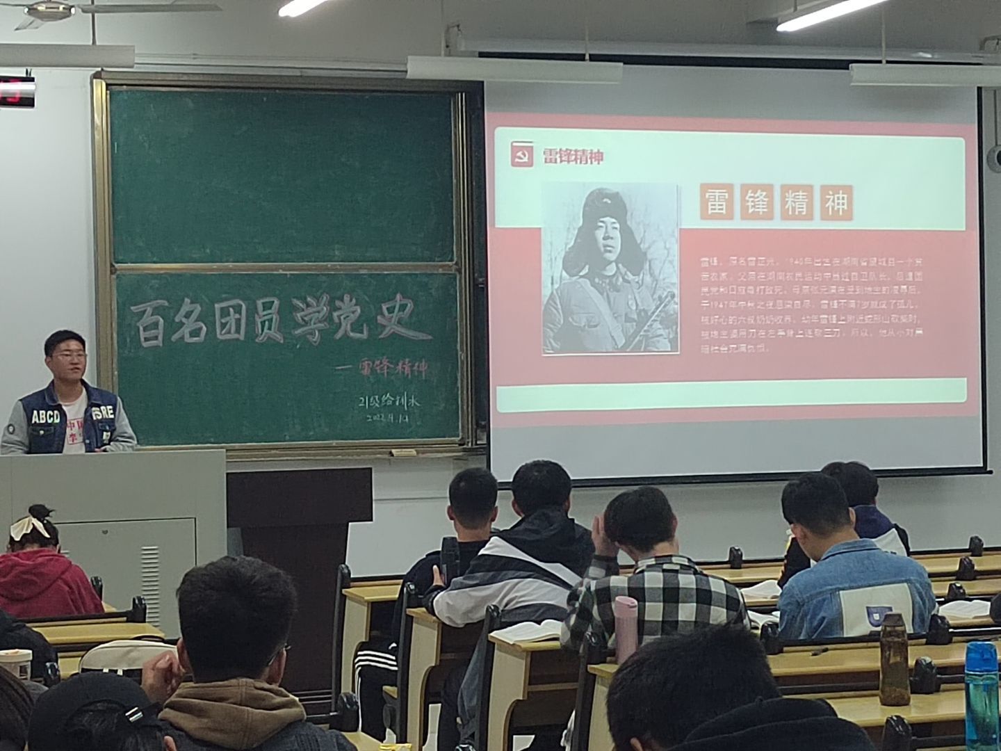 本期团日活动主题是:卓越人物。以入党积极分子讲述中国共产党成立以来为党、国家和人民做出突出贡献的人物形式开展。19449月,毛泽东主席亲笔题写了“向为人民利益而牺牲的张思德同志致敬”的挽词,21环境工程专业刘书畅同学向团员同学们介绍了张思德同志“为人民服务”的感人事迹。21环境工程专业刘一鸣同学从焦裕禄精神内涵、焦裕禄事迹介绍、学习和弘扬焦裕禄精神三个方面带领团员同学学习焦裕禄精神。21给排水科学与工程专业姜海峰同学和21环境工程专业傅芸欣同学分别以“为人民而生,为人民而死”和“做一颗永不生锈的螺丝钉”为主题带领同学们共同学习雷锋精神,作为新时代的青年学习雷锋精神,贵在常态坚持,要摒弃浮躁和功利心态,踏实学习专业知识,提高自身道德修养,立志在平凡中干出不平凡的业绩,乐于做一颗永不生锈的“螺丝钉”。