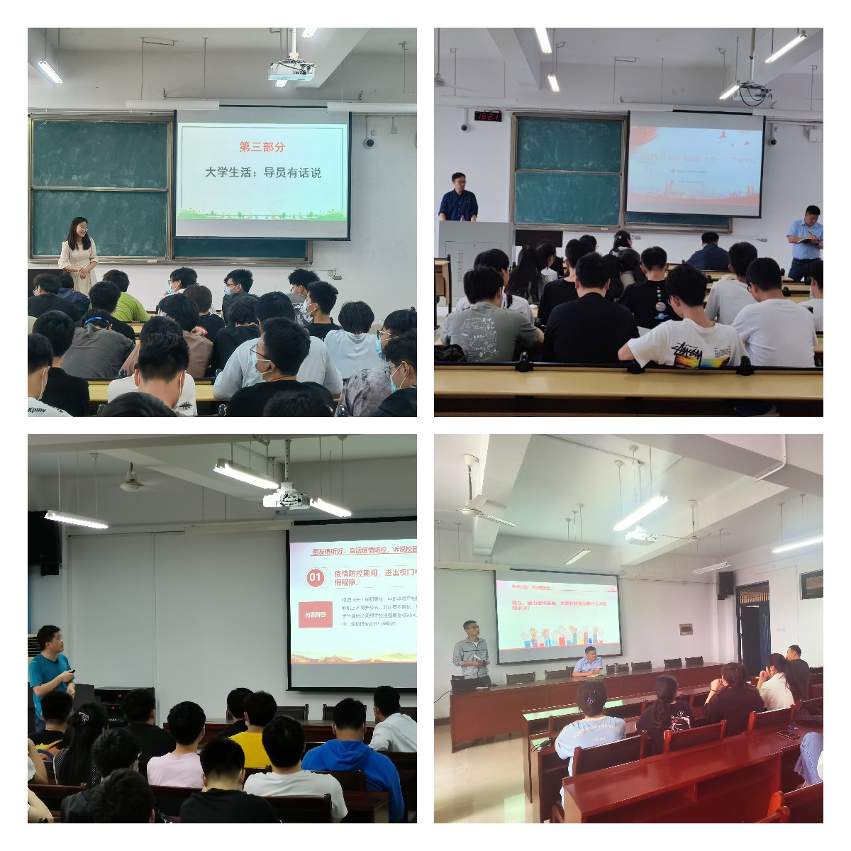 4月26日上午,环能学院班子和全体辅导员进行了集体备课,对开好主题班会的具体要求进行了梳理研究,对前一阶段同学们关心的问题从不同角度进行了回应。4月27日晚上起,学院各专业班级分别召开主题班会,班会上,同学们针对疫情防控以来出现的各类困难与诉求畅所欲言。与会学院领导和辅导员解答同学们关于重点关注的学业问题、疫情防控等问题,根据《关于在肥高校、中职学校严格实行封闭管理的通知》、《高等学校新冠肺炎疫情防控技术方案》(第五版)等政策文件的精神,分从“明白为什么”——牢固树立疫情防控“一盘棋”的大局观、“哪些事情必须做”——以实际行动做好自己健康的“第一责任人”、“哪些事情不能做”——坚决守住疫情防控纪律红线等三个方面,分享了学校各部门师生们从上到下为学校疫情防控作出的努力,引导全体同学坚定信念树立信心,珍惜全校师生共同维护和努力而来的抗疫成果。教育引导同学们坚决拥护党和国家疫情防控的总策略和总方针、积极配合和遵守属地和学校疫情防控各项政策,号召同学们牢固树立“健康第一责任人”意识,理解和配合学校疫情防控各项举措,坚决避免涉疫违纪行为,筑牢个人及校园生命健康安全防线。
