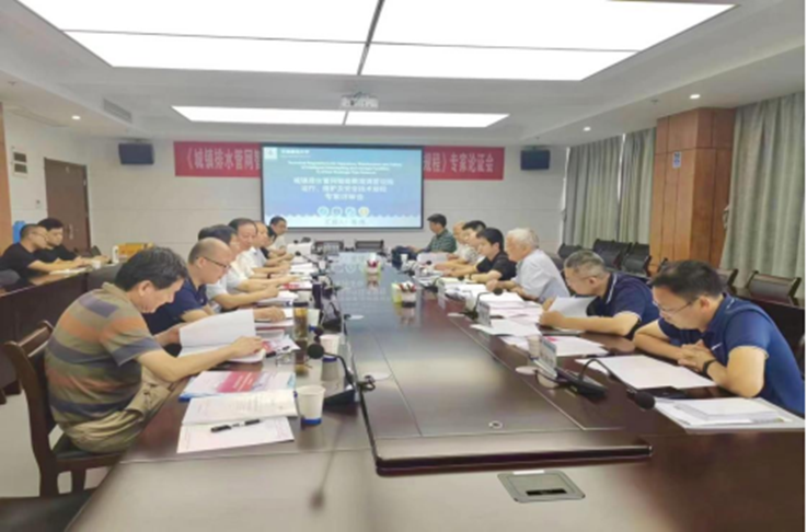 本网讯 7月5日,安徽省住房和城乡建设厅在我校组织召开了《城镇排水管网智能截流调蓄设施运行、维护及安全技术规程》(以下简称《规程》)草案专家论证会,来自安徽省市政工程协会、安徽省城乡规划设计研究院等单位的5位专家,厅城市建设处、标准定额处相关负责人,学校党委常委、副校长蔡新立及科技处、环能学院负责人和《规程》编制组成员共20余人参加会议。