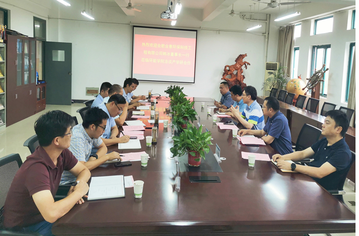 本网讯 8月25日,合肥合意环保科技工程有限公司董事长韩冰一行来环能学院开展产学研合作对接洽谈,环能学院领导班子成员和各系骨干教师参加座谈。