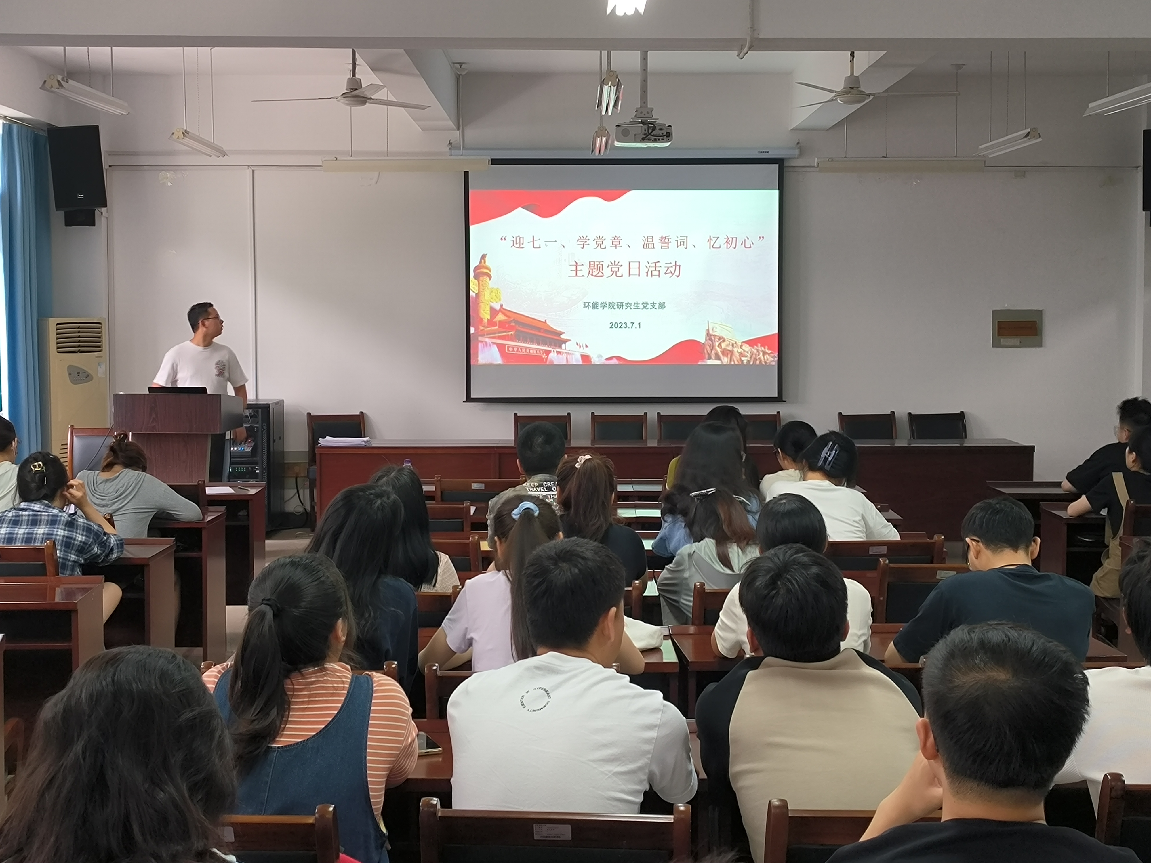 本网讯  百年征程波澜壮阔,百年初心历久弥坚。为深入开展学习贯彻习近平新时代中国特色社会主义思想主题教育,进一步弘扬党的优良传统和作风,增强基层学生党组织活力,发挥研究生党员的先锋模范作用,营造积极向上的节日氛围。71日,在中国共产党迎来102年华诞之际,环能学院研究生党支部开展“迎七一、学党史、温誓词、忆初心”主题党日活动