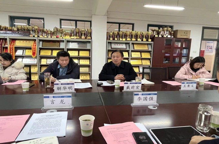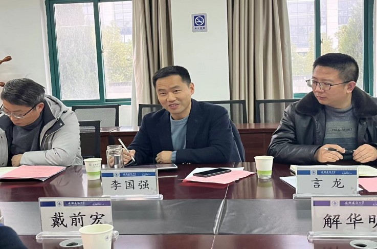 本网讯  1月16日,安徽省化工地质勘查总院党委委员、副院长李国强,党委委员、调查监测分院院长言龙,党委委员邓施宝一行5人来环能学院洽谈产学研合作。环能学院党委书记戴前宏热情接待了李国强一行,环能学院副院长解华明、公管学院副院长王秉义、学校相关专业师生参加了座谈会。