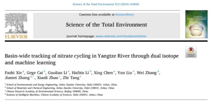 环境与能源工程学院在长江流域水体硝酸盐来源和迁移转化过程研究方面取得新进展