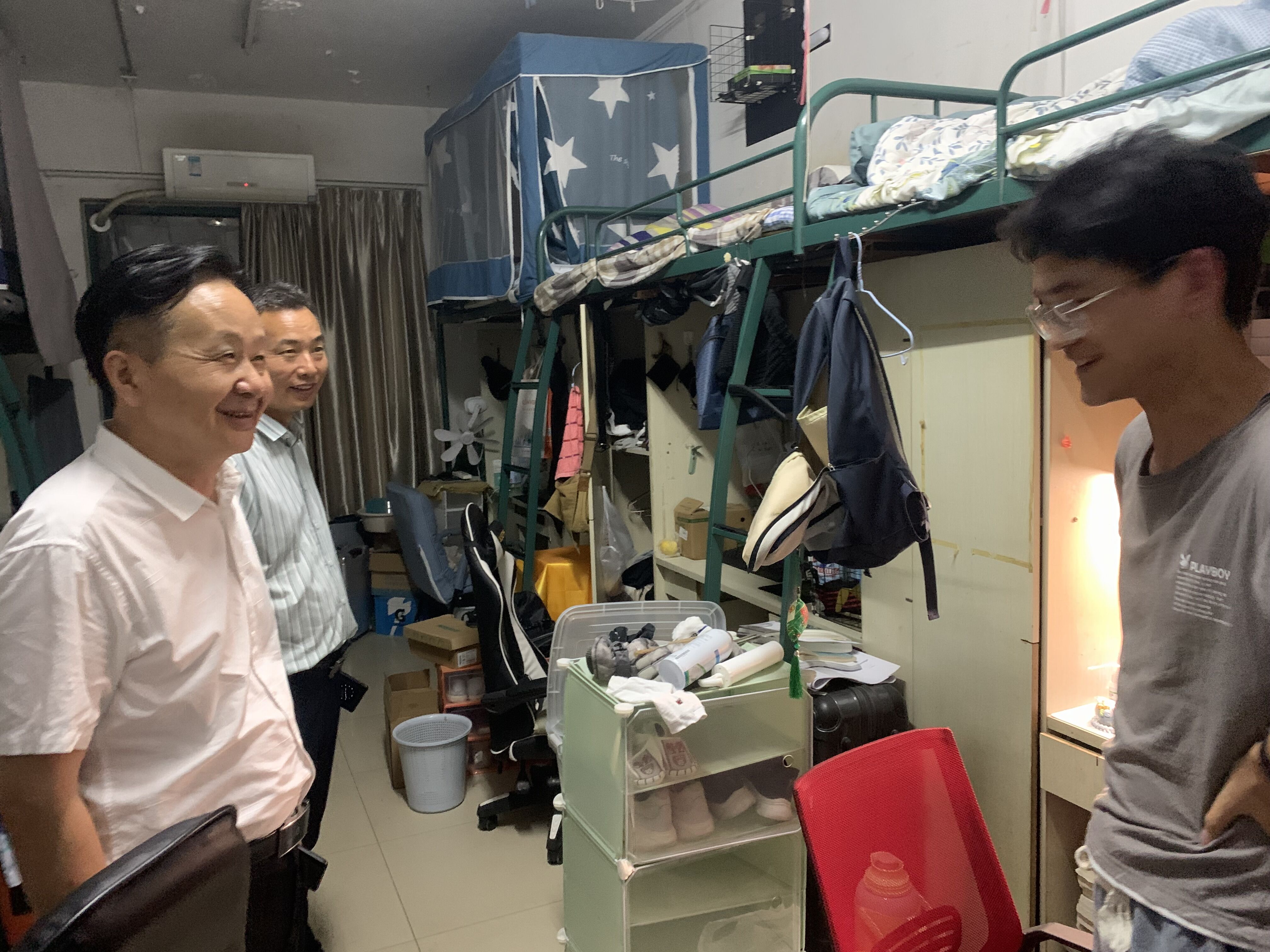 本网讯 为进一步做好毕业生安全教育,密切关注毕业生的思想动态,做到毕业生离校工作平安、稳定、有序。6月17日晚,环能学院党委书记戴前宏、副书记胡志龙与毕业班辅导员深入环能学院学生宿舍看望学生,了解毕业学生学习、就业等状况。