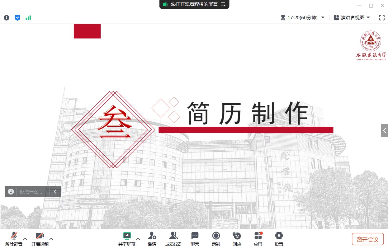 72日,环境与能源工程学院研究生会和环境与能源工程学院研究生第一党支部联合在线上举办了“申博考博暨就业线上经验分享交流会”。本期交流会邀请到了我校考取同济大学和河海大学的博士及入职安徽省招标集团的学长们分享申博考博和求职经验。
