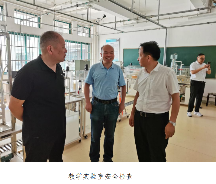 本网讯 为贯彻落实《安徽省学校安全生产专项领导小组关于做好2024年秋季学期开学学校安全工作的通知》(皖学安函〔2024〕26号)要求,切实做好期初实验室准备工作,有效预防各类安全事故发生,维护正常的教学科研秩序。9月6日环境与能源工程学院党委书记戴前宏、院长谢发之、副院长黄健和组织员何杨带队深入实验室开展期初实验室安全检查工作,全体实验管理人员陪同检查。