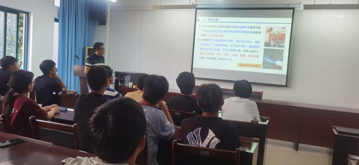 本网讯 为引导和帮助2024级本科新生更好适应大学生活、明确学习目标、增强专业认同感。近日,市政工程系组织开展了24级给排水和消防工程新生入学专业教育,学院党委书记戴前宏、副院长黄健、校教务处副处长丁超以及市政系正副主任、新生辅导员和专业导师参加活动。