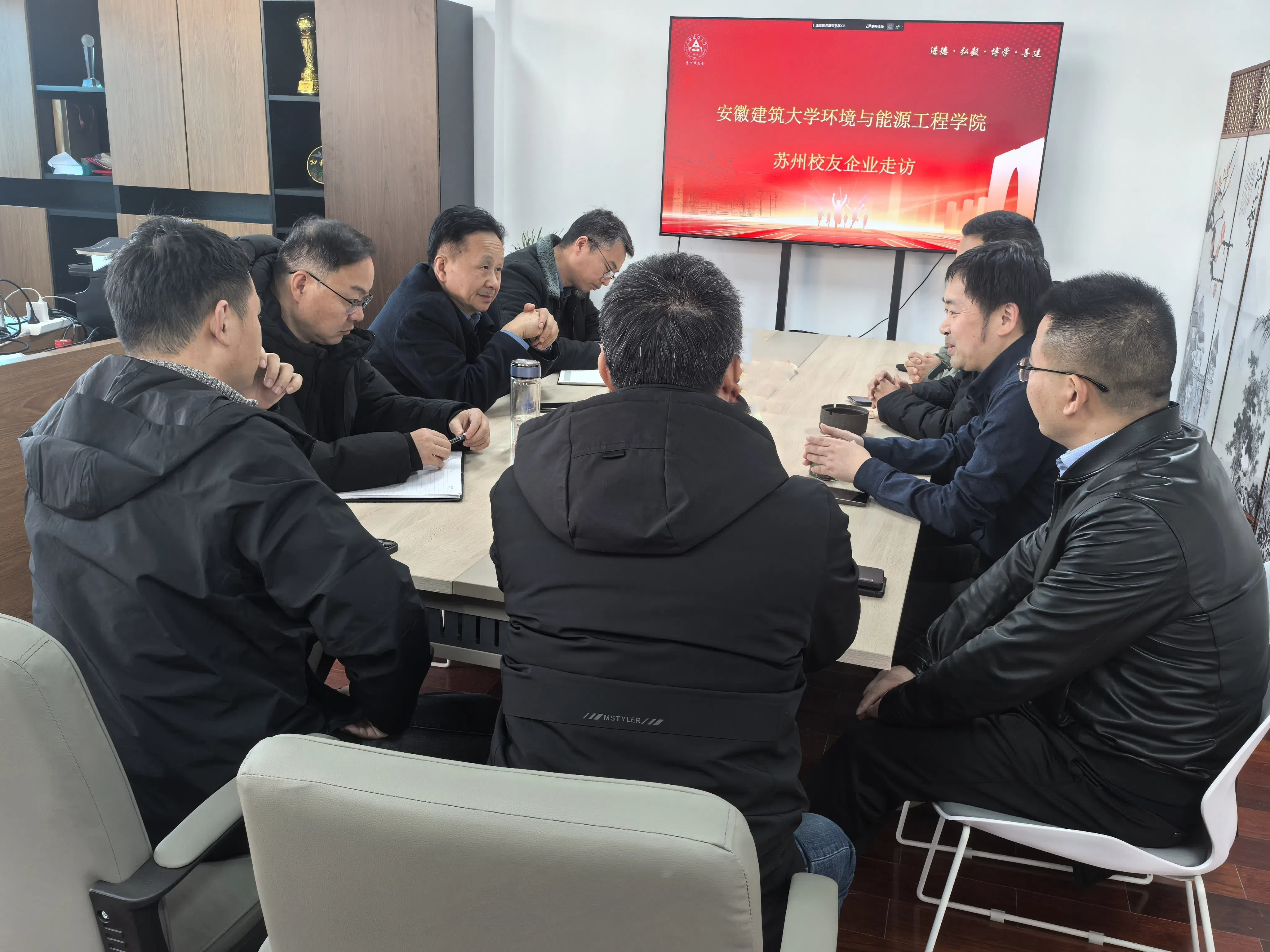 戴前宏一行首先在苏州洛卡本绿色建筑技术有限公司召开苏州校友座谈会,向各位校友全面介绍了近年来学校的发展、招生及就业等情况,对苏州校友长期以来对学校和学院的发展、学生就业等各项工作的大力支持表示衷心感谢。