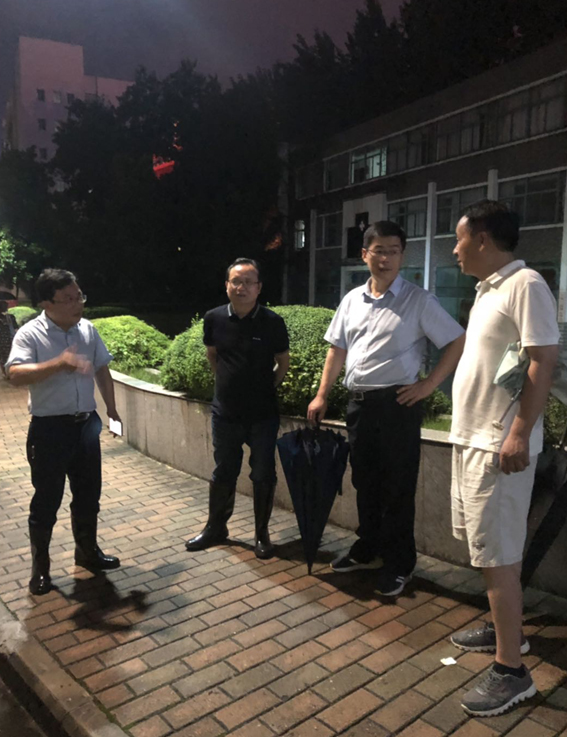 6月27日,合肥市突降强暴雨,持续强降雨造成北校区多处路面积水,后勤服务集团总经理戴前宏及相关部门负责人第一时间到达现场,在实地察看汛情后,要求后勤物业等部门及驻校物业公司迅速展开抢险排水工作。