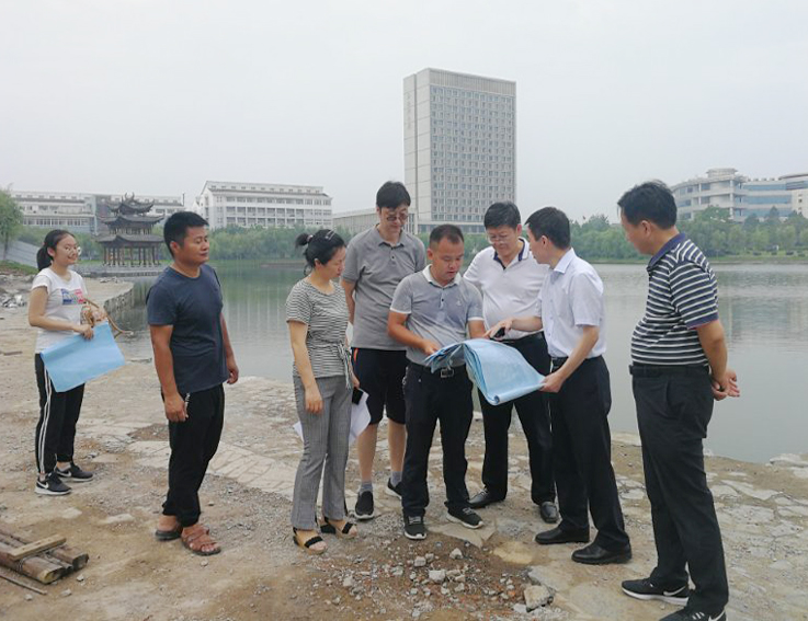 7月30日,校党委书记方潜生、副校长成祖德深入易海湖东侧景观改造现场,实地检查项目施工情况,后勤服务集团党政主要领导及施工单位项目负责人陪同参加检查。