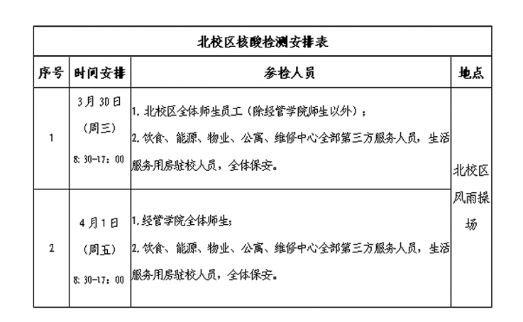 4、各单位要高度重视,请全体师生员工按规定时间,及时参加核酸检测。