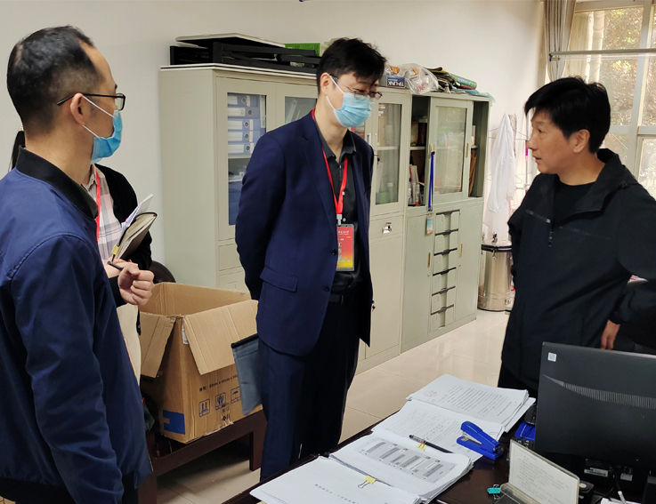 督导工作组在听取了各项工作汇报、查阅消毒记录、进出楼宇记录台账、人员“两码”及核酸检测记录等档案资料后,实地走访食堂、公寓、防疫物资储备仓库,检查体温检测、人员佩戴口罩等情况,查看防疫物资购买、领用台账。