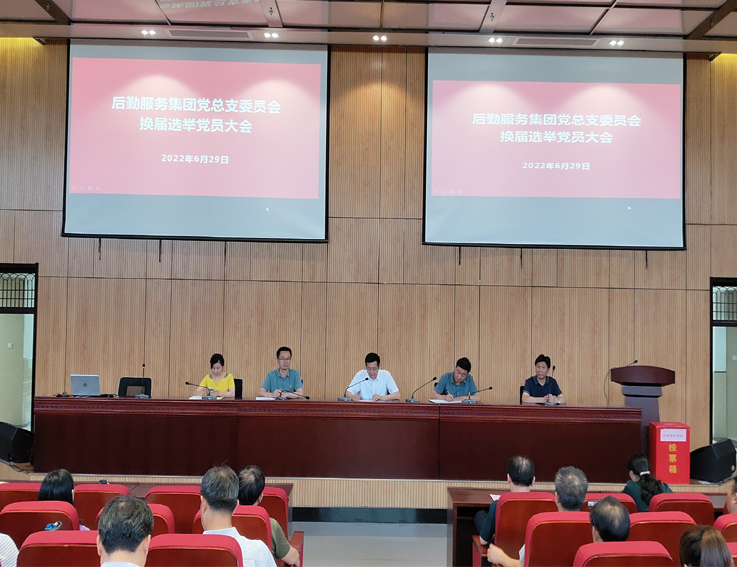 会议首先进行党总支委员会换届选举工作。大会在庄严的国歌中拉开帷幕,全体党员以良好的精神风貌参与这一党内政治生活大事。大会听取并审查了集团党总支委员会工作报告和选举办法,以无记名投票差额的方式选举产生了新一届后勤服务集团党总支委员会。经新一届党总支委员会第一次会议选举,陈雷同志当选为新一届集团党总支委员会书记。