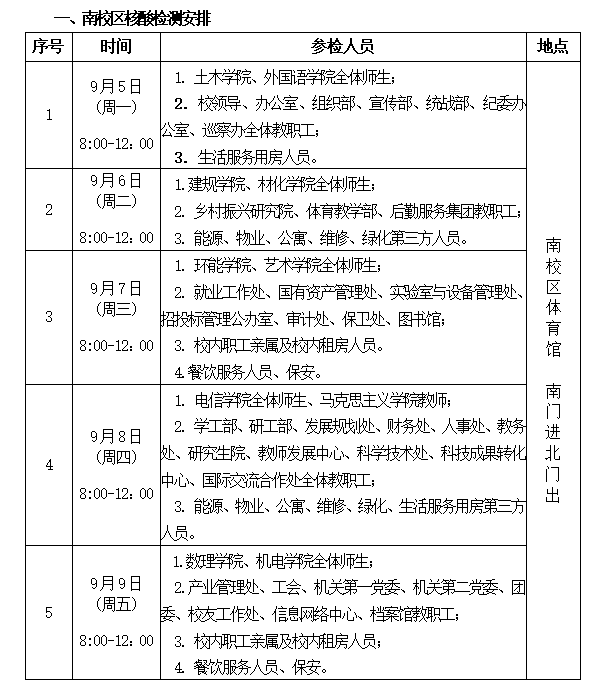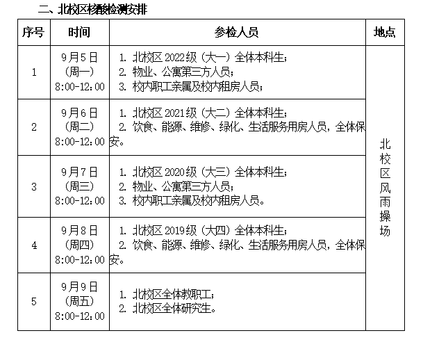 4、请全体师生员工按规定时间参加核酸检测,避免排长队