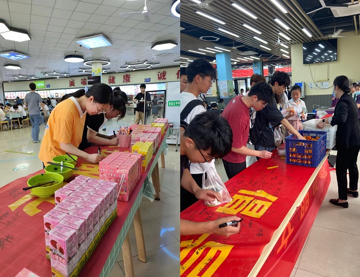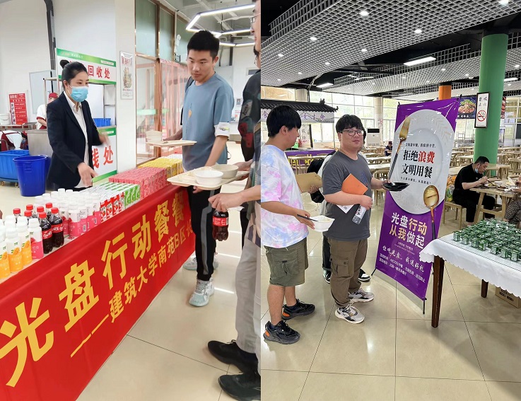 宣传周期间,后勤服务集团大力营造制止餐饮浪费宣传氛围,在各食堂就餐大厅内,通过悬挂横幅、张贴海报、电子投屏播放等形式进行制止餐饮浪费宣传;在餐具回收区域开展光盘送水果、酸奶、小礼品等活动;在打菜窗口实行半份菜、小碗菜、拼菜等供餐方式,积极营造“浪费为耻,节约为荣”的校园氛围。通过开展多种形式活动引导师生践行“光盘行动”,制止餐饮浪费行为,养成爱惜粮食、文明就餐的良好习惯。/图:程少聪;审稿:唐黎