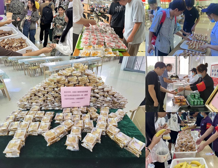 928日,学校各食堂为广大师生准备了月饼、水果及酸奶,为他们送去节日的礼物和祝福。当天在食堂就餐的同学们脸上都洋溢着节日的笑容,到处欢声笑语,就餐大厅内节日氛围浓厚。月饼虽小,却承载着浓浓的情意,传达的不仅是美味,更是学校对广大师生的一份关心和温暖。