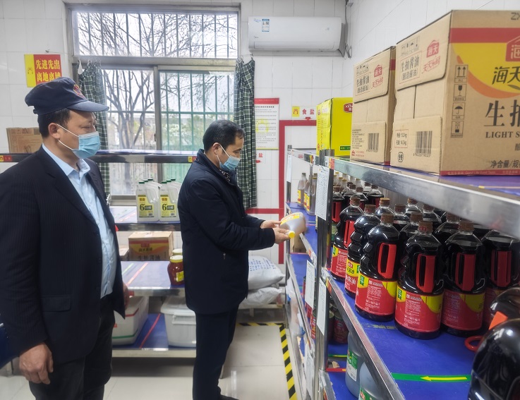 检查组一行深入学校食堂,实地查看“日管控、周排查、月调度”制度落实情况,重点检查食堂从业人员健康管理,食品储存、加工、留样、销售及餐饮器具清洗消毒过程,食堂安全生产及燃气安全管理措施落实等工作,并进行现场指导,提出宝贵意见和建议。