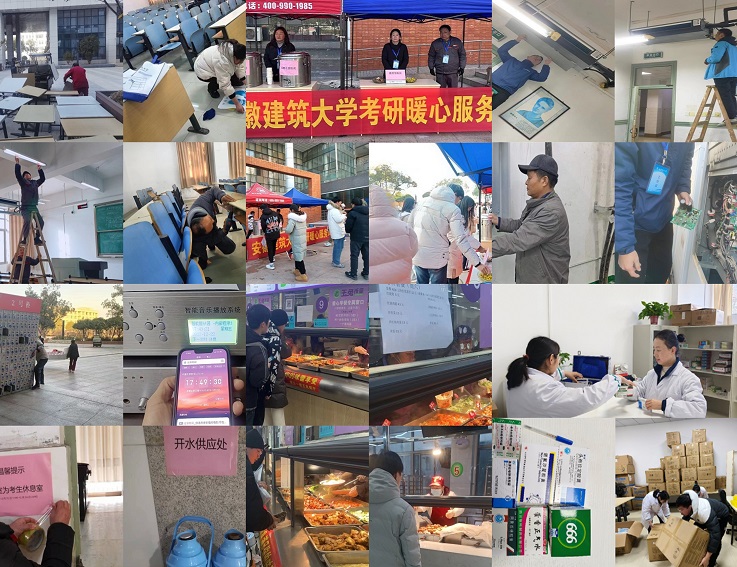 助力一程路,情暖学子心。2024年全国硕士研究生招生考试于20231223日至25日在我校进行,为确保考试期间各项服务保障到位,召开专项会议,提前部署,针对考场布置、卫生保洁、电力供应、设施检修、餐饮供应等环节进一步明确工作要求。考试期间,为考生提供免费早餐,推出优惠营养的爱心助考套餐,食堂就餐大厅延迟关闭空调,为跨校区考生提供温暖的休息场所;在考点楼宇设置暖心服务站和休息点,提供免费糖果、红糖姜茶等;提前优化配电系统、进行满负荷运行测试,加强重要电路特巡特护,调节空调温度;提前为考生发放口罩、配备常用药品等等,以积极主动的态度、热情饱满的服务,全力以赴做好研考期间服务和保障工作