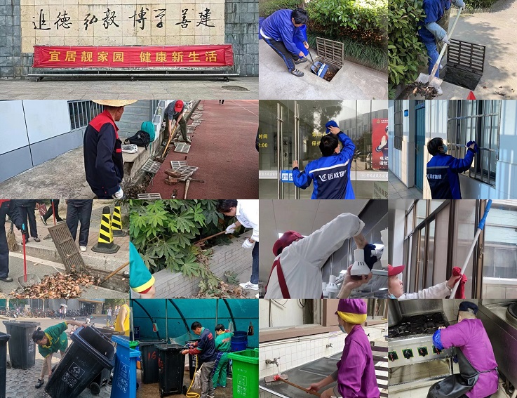 推进一项行动,建设宜居校园。20234月是第35个爱国卫生月,后勤在全校范围内开展春季爱国卫生整治行动,从宣传动员、清脏治乱、治理四害入手,向全校师生进行爱国卫生月科普集中对教室卫生死角、公寓垃圾站、食堂灶台门窗、校园下水道等重要区域进行环境卫生整治,彻底清除卫生死角和积存垃圾,持续推动垃圾分类工作,引导全校上下积极改善学习生活环境,倡导文明健康绿色环保生活方式,营造美丽宜居校园浓厚氛围