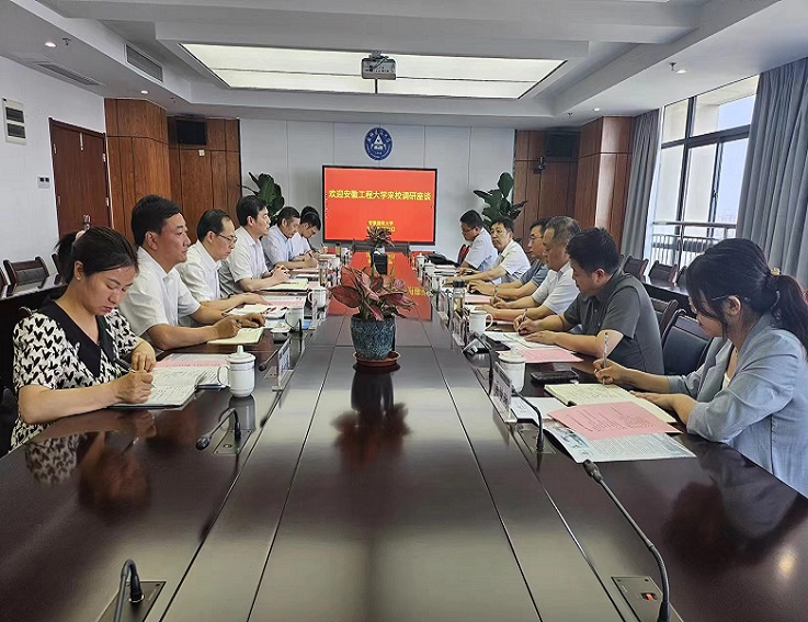 黄显怀对郑建一行的到来表示欢迎,并介绍了学校基本情况以及我校后勤管理体制机制的现状和改革发展规划。郑建对学校的热情接待表示感谢,介绍了安徽工程大学后勤工作及人员的相关情况,并提出了本次调研目的和调研内容。