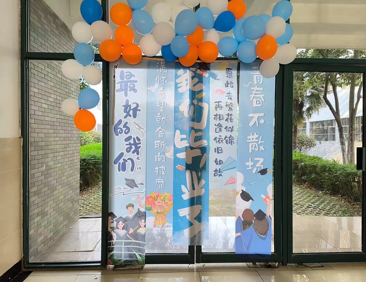 后勤管理处针对离校工作提前安排,周密部署,细化分工。开展毕业生退宿工作培训,要求全体工作人员做好各项离校退宿准备工作,做好登记,热情服务;通过学校官网、后勤微信公众号推送毕业季温馨提示,针对学生关心的宿舍用电充值、个人物品保管、宿舍物品移交及文明离校等方面,全面细致地向毕业生宣传相关手续办理流程、注意事项,流程规范化,服务精准化,节省学生们的办理时间,提高服务效能;各毕业生楼宇悬挂条幅、气球等营造温馨美好的毕业氛围,暖心欢送毕业生开启新征程。