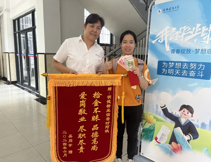 工作人员通过电话联系、同学联系、上报学院等方式,寻找失主,为减少学生来回奔波,通过邮寄、手机转账等方式将财物归还,受到了学生的一致好评,收到学生感谢锦旗2面。