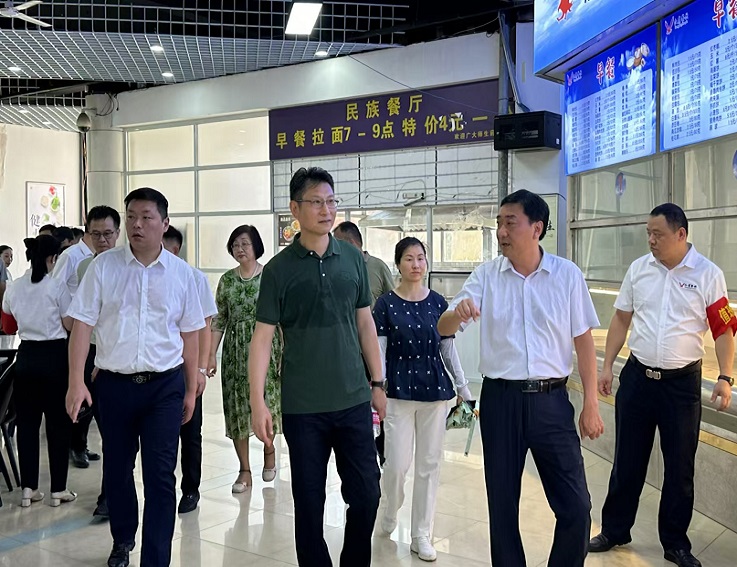 马文革先后实地查看了金寨路校区1-4#学生公寓、老旧小区改造、20-22栋小高层燃气管道改造情况,紫云路校区南大门、国土空间数据中心、新南苑餐厅施工现场、新建第一开闭所,并深入两个校区食堂实地查看学校食堂“文化餐厅”建设施工进度及维修改造情况。现场听取了后勤管理处、工程施工单位工作汇报,对施工安全、工程进度、施工质量认真询问和细致检查,就解决推进中的困难和问题、确保工程质量、加快工程进度等提出指导意见,对高温天气下坚守一线的后勤、国资工作人员及施工人员表示慰问。