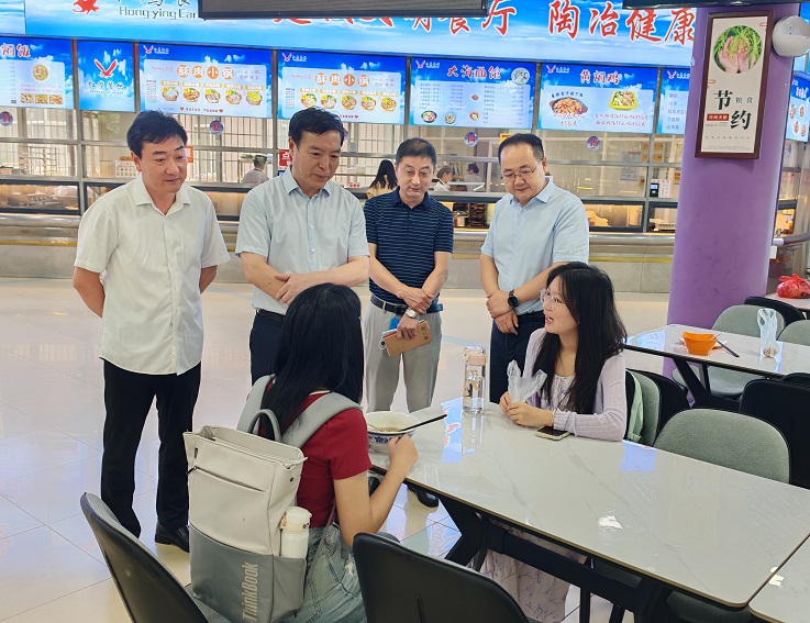 黄显怀深入学生食堂,详细了解北园餐厅饮食保障情况,仔细查看菜肴的花色品种、餐食结构分类及质量,对食堂管理工作提出具体要求。随后,他与用餐学生亲切交流,询问饭菜是否可口、价格是否合理、份量足不足等问题。并叮嘱餐厅负责人要把学生当成自己的孩子一样爱护,注重加强饭菜的质量管理,做到荤素合理搭配、营养健康、经济实惠,要求餐厅要结合学生自习、研讨等提供对应支持服务,为师生提供更好、更优质的饮食保障服务。(作者:程少聪;一审:陈委婕 二审:韩小霞 三审:唐黎)
