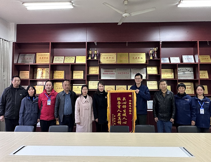 本网讯  近日,我校后勤管理处远成物业收到了来自经济与管理学院的“关爱师生暖人心 服务育人显真情”锦旗,这面锦旗承载着学院师生对后勤管理处物业保障人员长期工作的肯定,更是对未来工作的期待和鼓励。