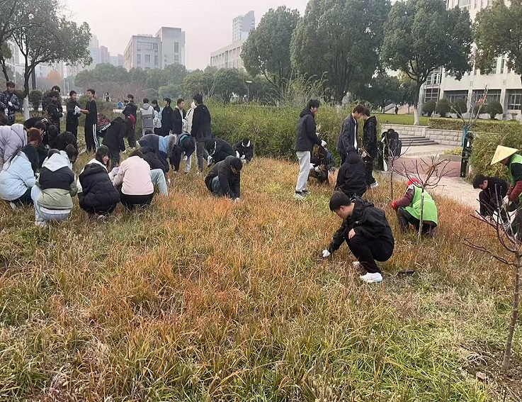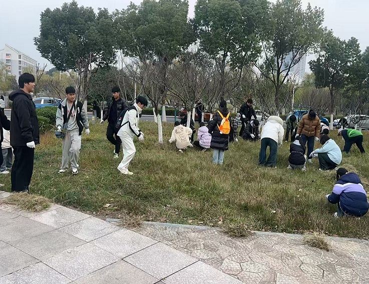 本网讯 12月12日,后勤管理处协同材化学院新能源和化工两个专业的大一新生开展了一次别开生面的劳动实践课—绿地除草活动。此次活动旨在培养学生的劳动意识和环保意识,让学生在实践中体验劳动的乐趣和价值。